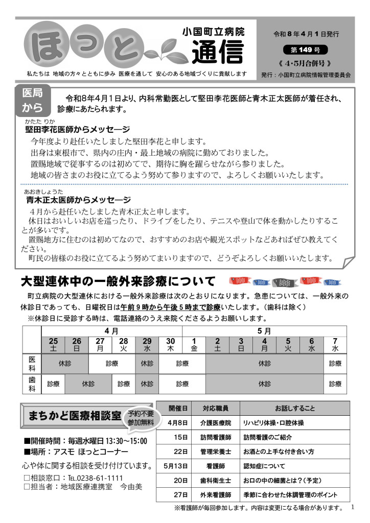 ほっと通信(第149号)令和8年4月1日発行