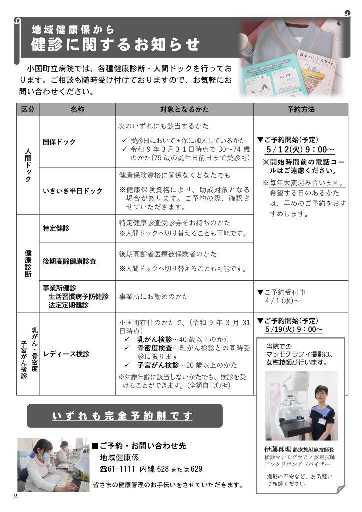 - 地域健康係から 健診に関するお知らせ