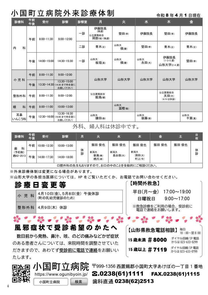 - 外来診療体制、診療日変更等のお知らせ